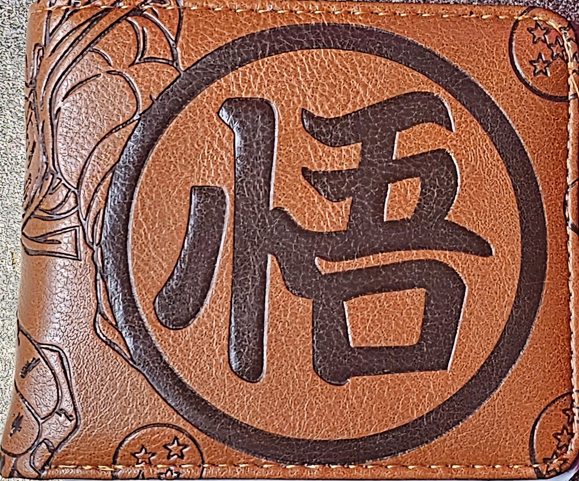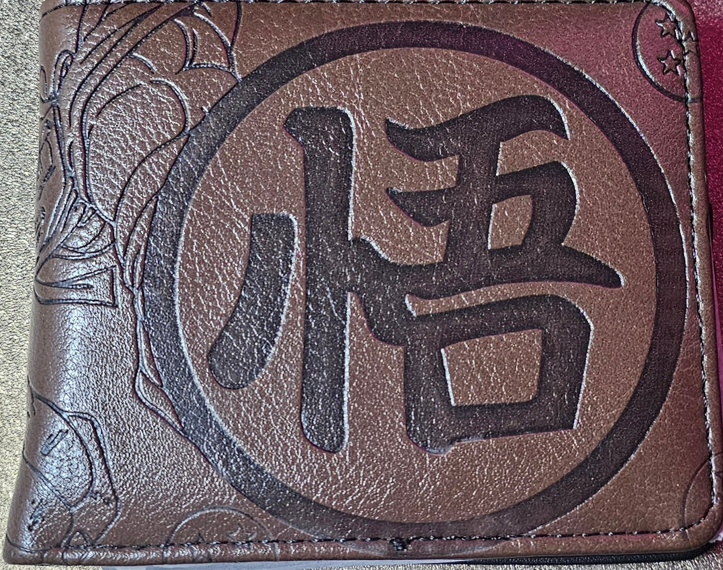"Go" Kanji Featuring the distinctive "Go" kanji that Goku wore after completing his intense training on his way to Namek. This symbol marked a pivotal moment in Goku's journey as he prepared to face new challenges and enemies. Carry this wallet as a reminder of determination and the continuous path to self-improvement.